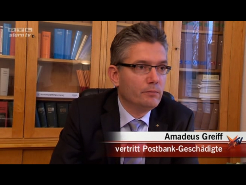 · STERN TV (RTL) - 05.12.2012 RECHTSANWALT GREIFF ZUM THEMA FALSCHBERATUNG DURCH DIE POSTBANK - BILDBEITRAG